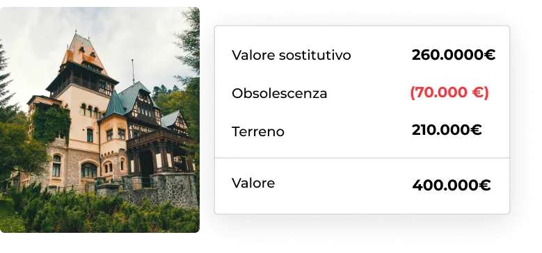 Valore di nuovo - Deprezzamento + costo del terreno = Valore intrinseco